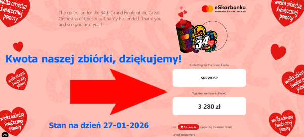 Już w najbliższą niedzielę 25 stycznia 2026 rusza 34. Finał Wielkiej Orkiestry Świątecznej Pomocy, tegoroczne hasło WOŚP to "Zdrowe brzuszki naszych dzieci"Dwa nasz kluby SP2YRY wspomagany przez PK RVG i SP2ZIE od kilku lat są zaangażowane w promowanie WOŚP na pasmach amatorskiego radia, w tym roku pod znakiem okolicznościowym SN2WOSP.