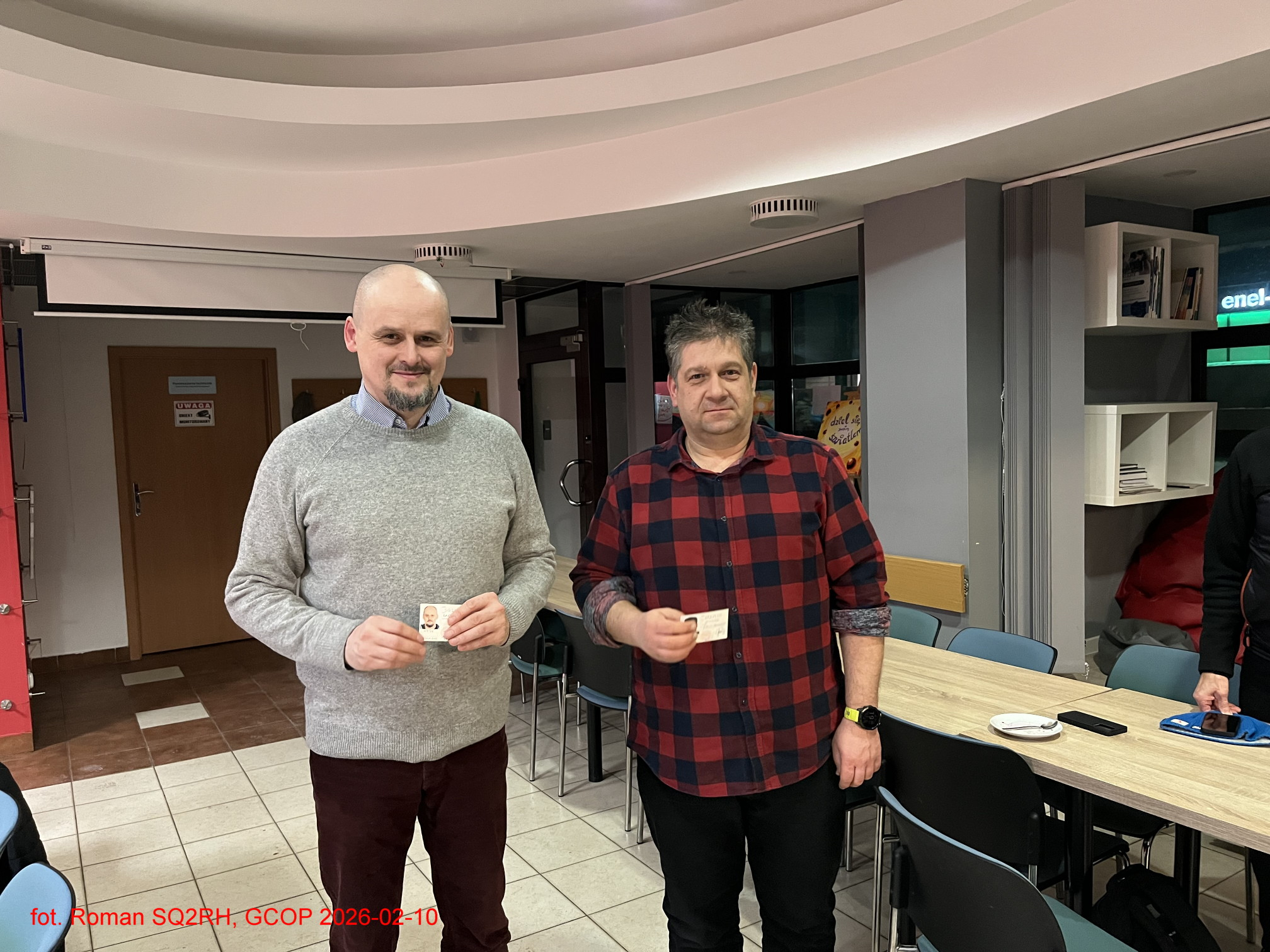 Bartłomiej Socha - SQ2KPPJ oraz Michała Jakubowskiego - SP2MIO. Nowi członkowie uroczyście odebrali swoje legitymacje członkowskie PZK, a kolega Michał zgodnie z polską tradycją zafundował tzw. wpisowy słodki poczęstunek -dziękujemy bardzo.